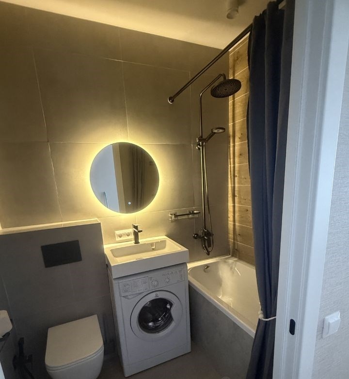 сдаётся уютная квартира с дизайнерским ремонтом, расположенная на 4м этаже 8этажного дома. квартира полностью меблирована на кухне установлена современная мебель, а в комнате есть всё необходимое для комфортного проживания. из техники в вашем распоряжении кондиционер, водонагреватель, холодильник, телевизор и стиральная машина. ванная комната оборудована ванной, что позволит вам расслабиться после долгого дня. дом, в котором находится квартира, оснащён подземной парковкой. для удобства жильцов предусмотрен грузопассажирский лифт. район, где расположена квартира, обладает развитой инфраструктурой. в пешей доступности находятся школы, детские сады, клиники и магазины, что делает её идеальным местом для семейного проживания. до ближайшей станции метро можно доехать на автомобиле всего за 5 минут, что очень удобно для тех, кто ценит своё время.