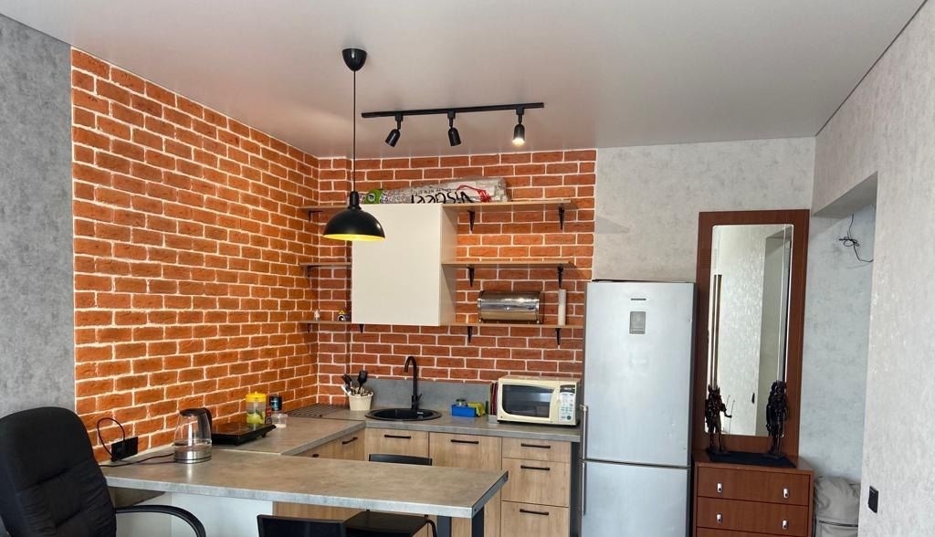 перепланировка, перенос кухни. отдельная спальня с выходом на лоджию. есть варочная панель и духовка, на фото еще ее нет.