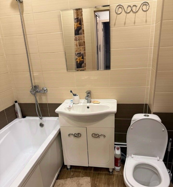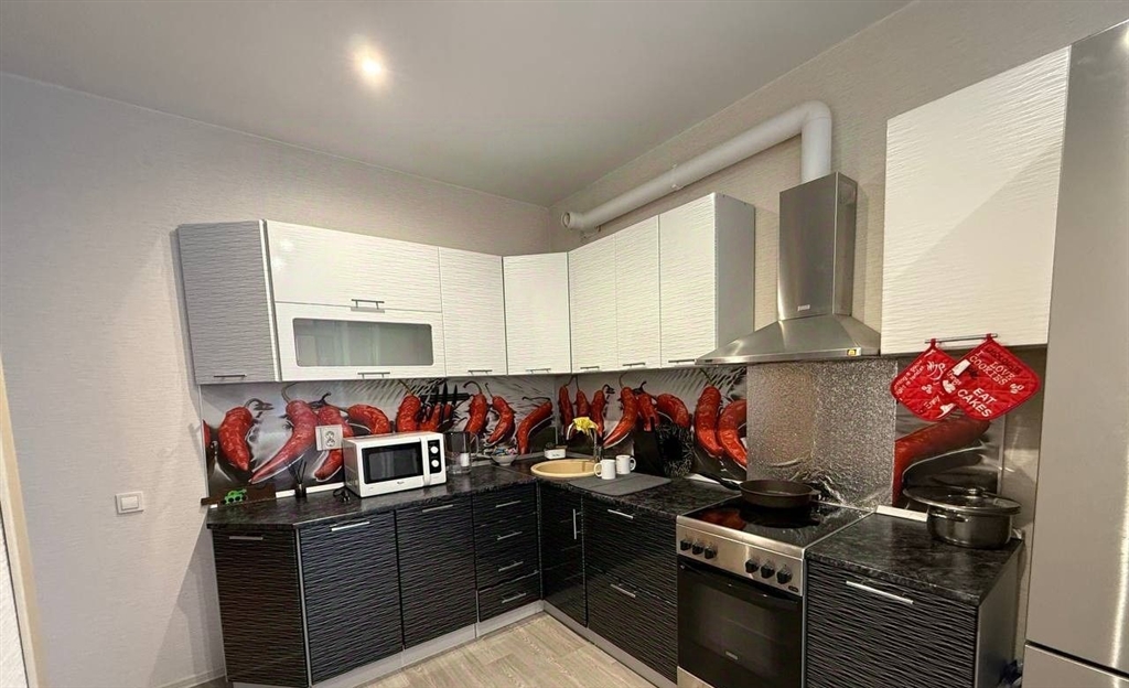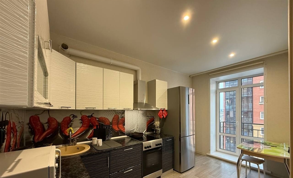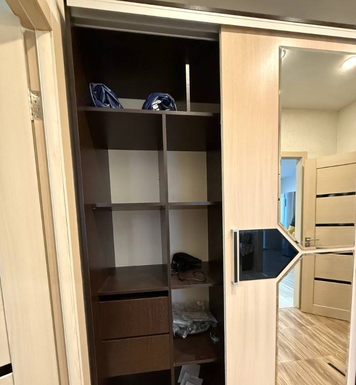 ухоженная уютная квартира. есть все для жизни мебель кровать двухспальная с матрасом, диван, стол кухонный, табуреты, гарнитур под телевизор, встроенные шкафы. техника холодильник, стирала, телевизор, вифи роутер, современная кухня.