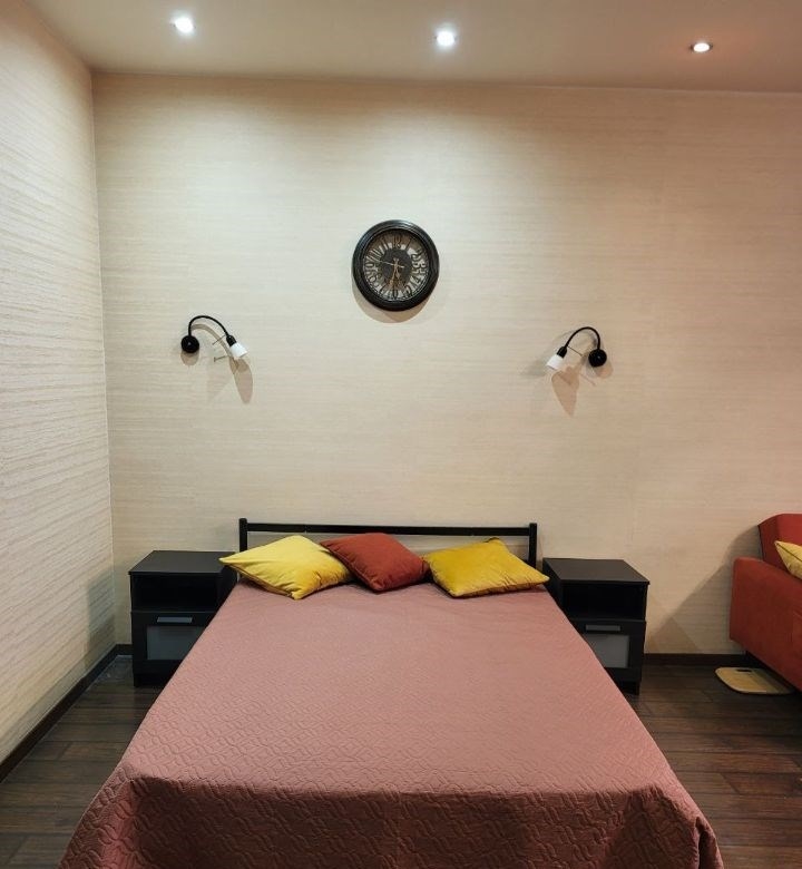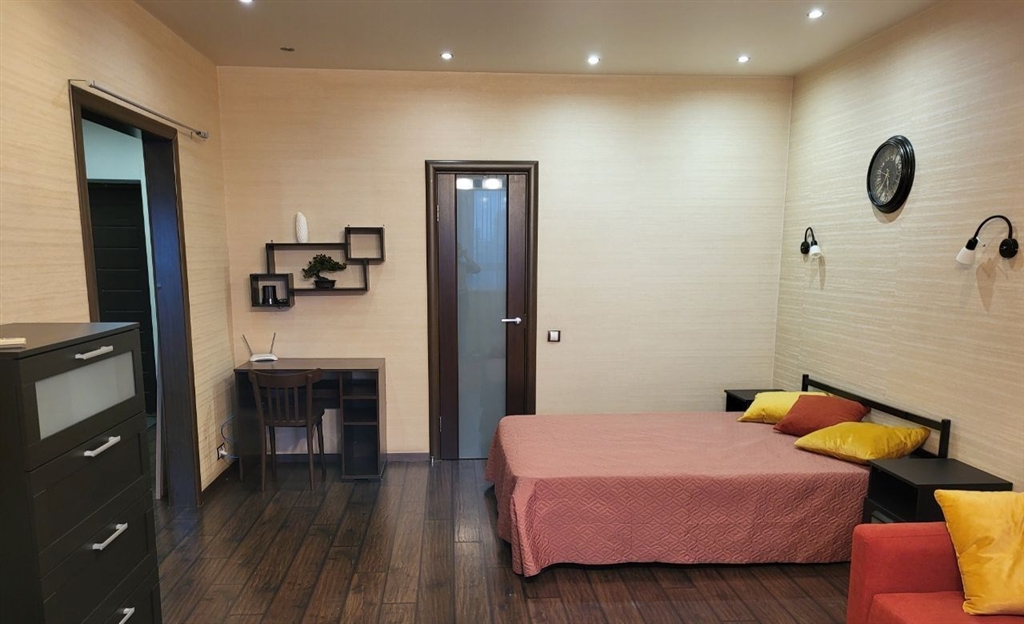 уютная, просторная однокомнатная квартира в шаговой доступности от метро октябрьская. квартира оборудована всем необходимым для комфортного проживания. имеется вместительная гардеробная, полноценная двуспальная кровать, раскладной диван в комнате и кухне, вся бытовая техника.
