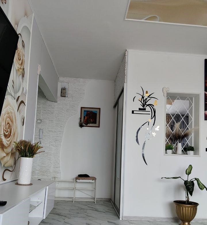 квартира с дизайнерским ремонтом, никто ещё не жил, есть всё, вся бытовая техника, тоже всё в отличном состоянии, почти новое, на фото всё как есть, балкон с пластиковыми окнами, всё окна открываются, это очень удобно, чтобы помыть. на полу ламинат, кухня и коридор керамогранит, в комнате виниловая плитка, на стенах вс кухне моющие обои , в комнате фотообои 3д,.ванна и туалет керамическая плитка, на полуккерамогранит. двери новые, в гардеробной комнате дверь купе.