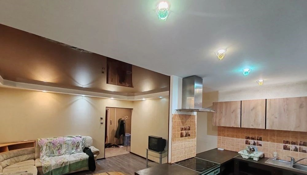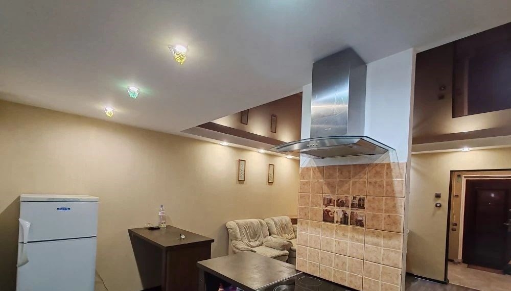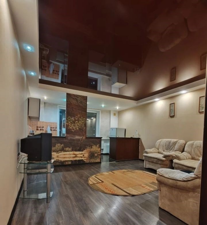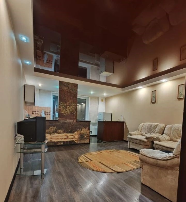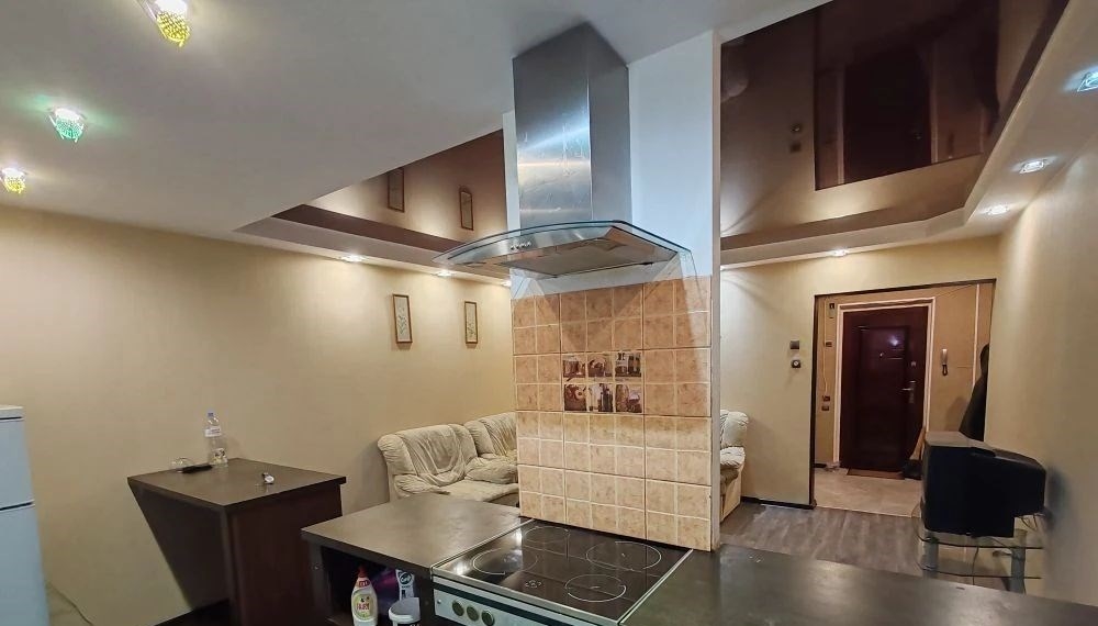 двушкастудия, чистая, светлая. с даётся на длительный срок.зал с угловым диваном совмещён с кухней. вторая комната, тоже с диваном, изолированная. большая гардеробная комната с отдельным входом из коридора.в ванной комнате душевая кабина и раковина.новая стиральная машинка .перед квартирой большой тамбур 15 м2.вода и электричество по счётчикам оплачивается отдельно.залог 10 тыс рублей возвращается .
