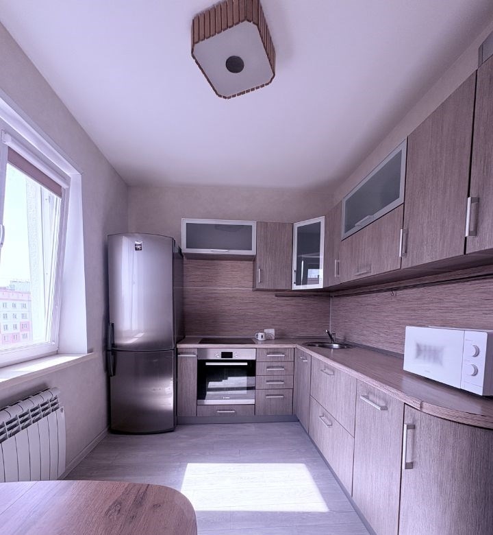 сдается в аренду на длительный срок уютная, светлая, теплая, комфортная квартира. основные характеристики 1 комната общая площадь 37,5 м² свежий ремонт застекленная лоджия с видом на тихий двор полностью меблирована вся техника в наличии кондиционер, водонагреватель, стиральная машина, холодильник, плита, духовка, микроволновка, чайник преимущества развитая инфраструктура в пешей доступности магазины, детские сады, образовательный центр новые грани школа 219, детская и взрослая поликлиники, ледовая арена родник, остановки общественного транспорта у дома чистый подъезд тихие соседи чистый двор с детской площадкой идеально подойдет для молодой семьи пары одинокого арендатора стоимость аренды 27 000 руб.мес. счетчики.залог. звоните прямо сейчас, чтобы договориться о просмотреp.s. собственник, без посредников. квартира сдается на длительный срок ответственным арендаторам.