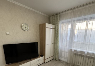 ухоженная уютная квартира. есть все для жизни мебель кровать двухспальная с матрасом, диван, стол кухонный, табуреты, гарнитур под телевизор, встроенные шкафы. техника холодильник, стирала, телевизор, вифи роутер, современная кухня.