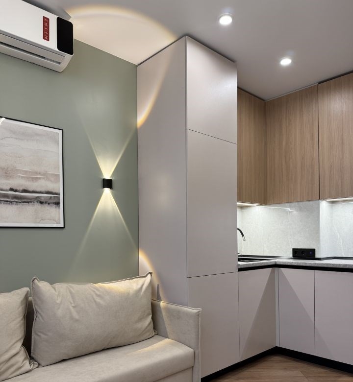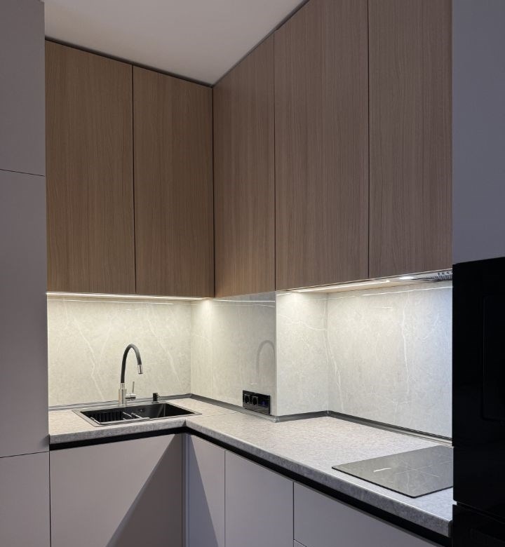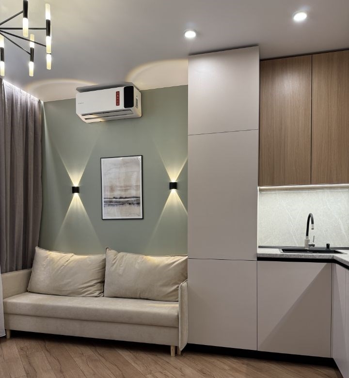 в продаже стильная евро двушка. качественный новый ремонт с продуманным функционалом для комфортного проживания. все, что есть на фото, достаётся новому владельцу. кухня оборудована встроенной техникой духовка, свч, индукционная плита, холодильник, посудомойка, вытяжка. установлен кондиционер. в квартире имеется большая отдельная гардеробная комната. отдельное место, прачечная стиральная машина, бойлер. всё освещение управляется через систему умный дом. в квартире никто не жил, не прописан. один взрослый собственник. обременений нет. в доме есть подземная парковка и консьерж. очень ухоженная красивая территория дома с закрытой системой заезда шлагбаум. рядом школа, детский сад, магазин магнит и вайлдберис. бесплатное юридическое сопровождение сделки без комиссии агенства