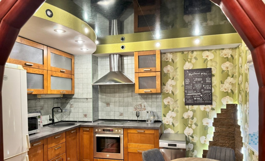 в квартире выполнен современный ремонт в светлых тонах из качественных отделочных материалов. удобная,узаконенная перепланировка. большая спальня с гардеробной, просторный сан.узел с теплым полом,большая ,уютная кухня гостинная. во всей квартире установлены натяжные потолки. квартира с мебелью и техникой, в каждой комнате кондиционерчистый подъезд,отсечка на две квартиры.хорошие соседиразвитая инфраструктура в шаговой доступности дет.сады,школы.торговые центры,аптеки. рядом остановка общественного транспорта. до метро площадь маркса 20 мин. пешком.единственный взрослый собственник. продаю сам