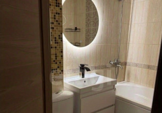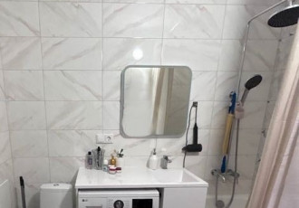 продается двухкомнатная квартира площадью 65 кв.м. в кирпичном доме 2013 г. с ремонтом в светлых тонах. в квартире остаются тумба с раковиной, кондиционер на кухне, серый диван, телевизор samsung в спальне, водонагреватель, а также тумба и откидной...